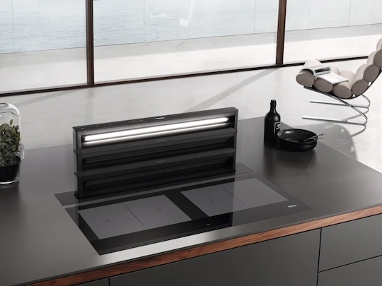 Downdraft extractor system in elegant matt black design and with intuitive SmartControl operation